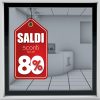 Adesivo da esterno monomerico a forma di etichetta, per vetrofania con scritta Saldi.