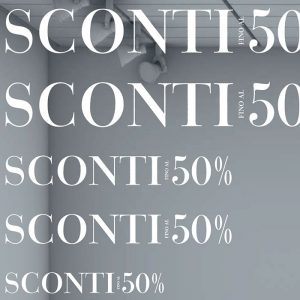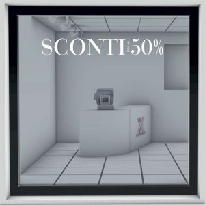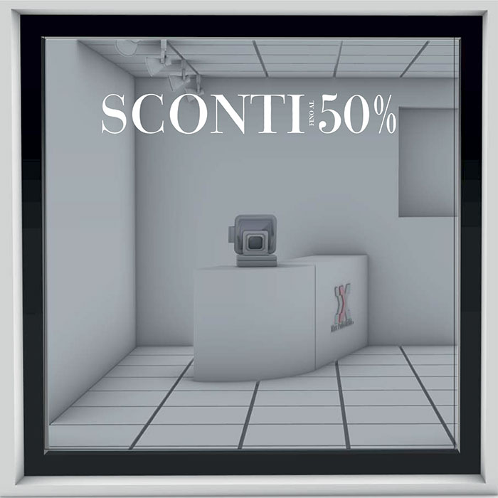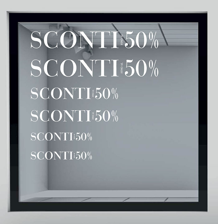 Adesivo da esterno in vinile prespaziato per vetrofania con scritta Saldi.