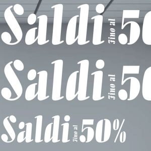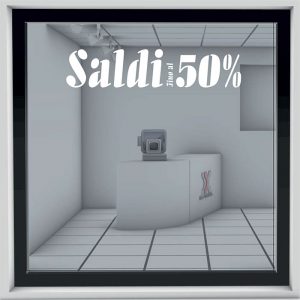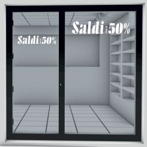 Adesivo da esterno in vinile prespaziato per vetrofania con scritta Saldi.