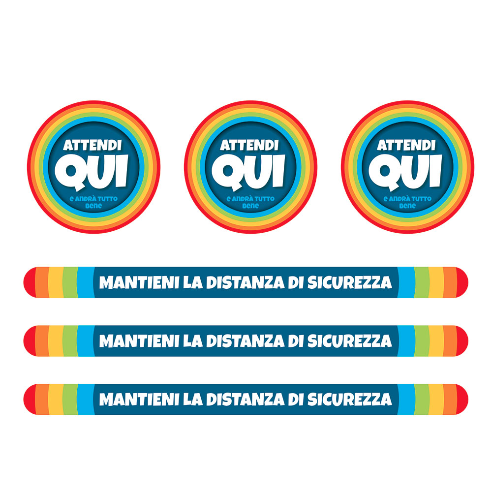 Kit di adesivi calpestabili per il rispetto delle distanze di sicurezza, per negozi e locali pubblici.